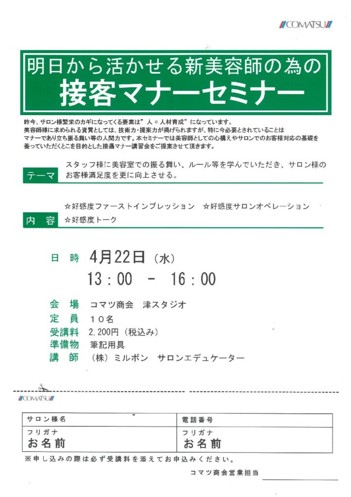 明日から活かせる新美容師の為の 接客マナーセミナー